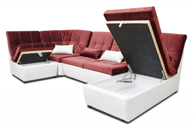 Особенности дивана: Каркас: ЛДСП, фанера, брус. Большое спальное место. Два вместительных ящика для белья. Отстрочка шёлковыми нитками. Изготавливается на ППУ + пружина змейка. Механизм трансформации: еврокнижка+пантограф. Легко раскладывается. Современный дизайн.