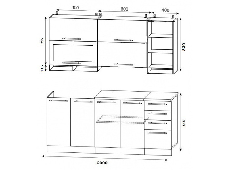 - Высота шкафов: Верхние 700 мм/Нижние 850 мм