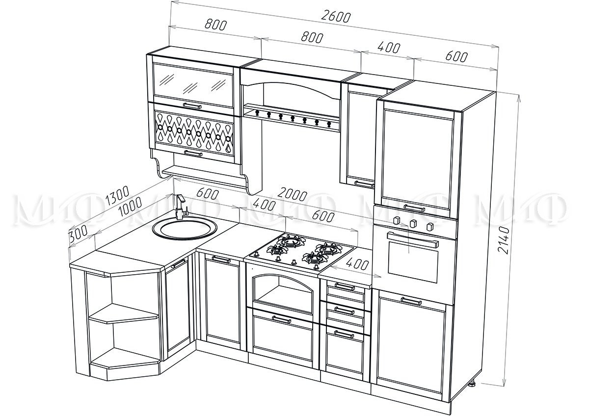 - Глубина шкафов: Верхние 300 мм/Нижние 600 мм/Глубина столешницы 600 мм